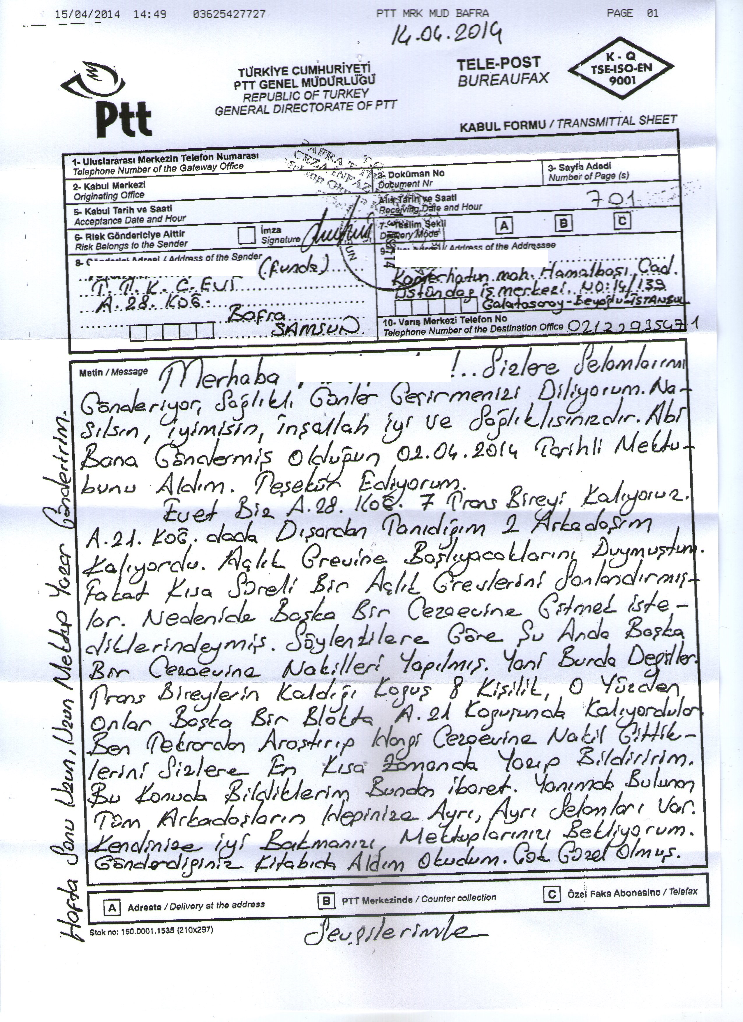 Bafra’daki trans mahpusların gönderdiği faksı ve kurumların 15 Nisan tarihli açıklamasını okuyucularımızla paylaşıyoruz.