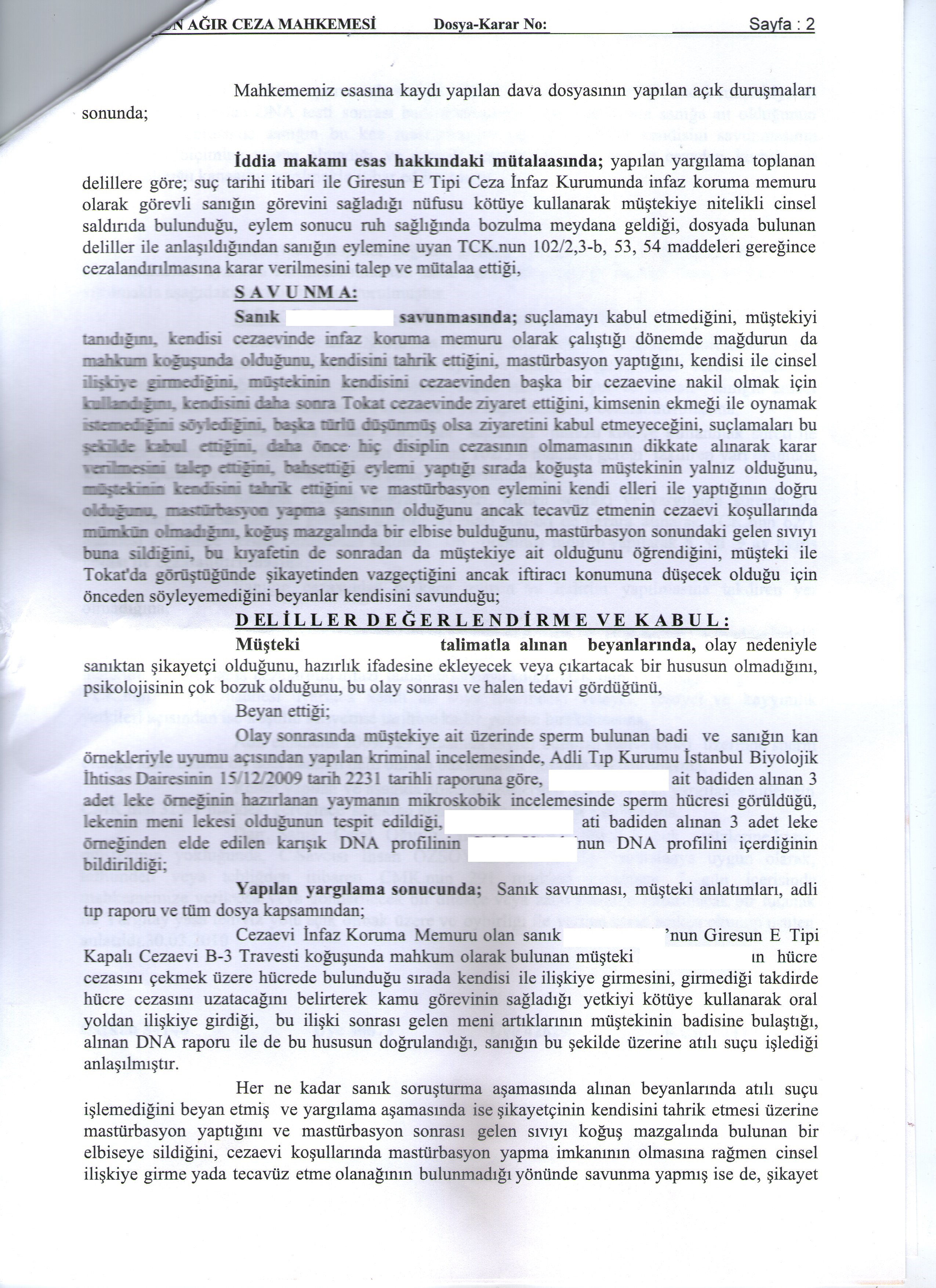 Hapishanelerde tutulan LGBTİ mahpusların anlatımlarında oldukça sık taciz ve tecavüz iddialarıyla karşılaşmak mümkün. Aşağıda yer vereceğimiz mahkeme belgesi de bu iddialardan birine ilişkin. Bu belgeler, Ceza İnfaz Sisteminde Sivil Toplum Derneği’ne (CİSST) mektup yazan bir trans mahpus tarafından blogumuza ulaştırıldı.